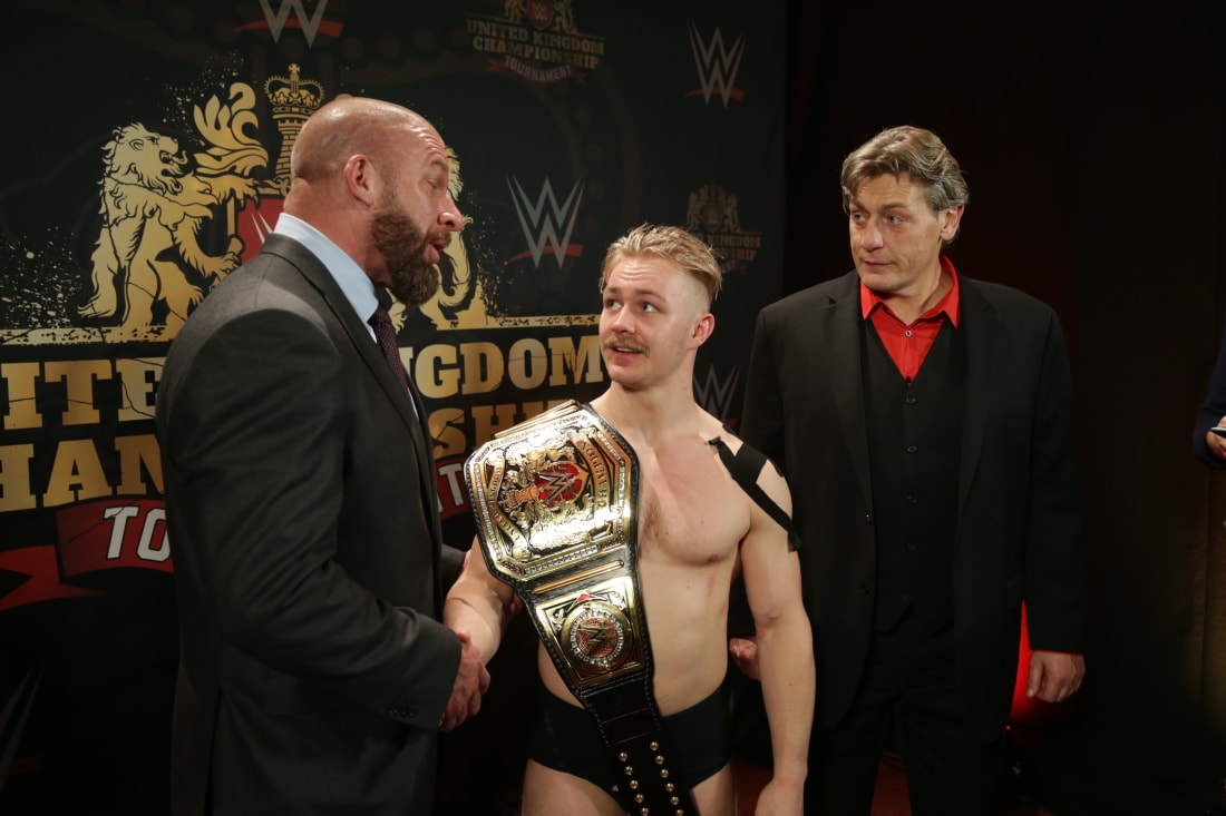 Triple H felicita a Bate por su reinado de mas de 2 meses como campeon inaugural de UK.